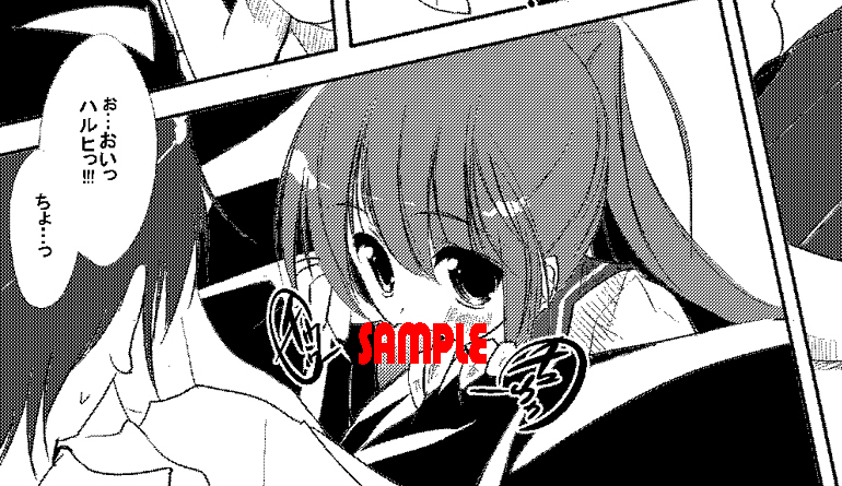 ハルヒ本の方も着々と作業させて戴いております(`・ω・´)ゞ ちっちゃいハルヒがところ狭しと暴れる様は描いてて楽しいですww ↑原稿ラフ ちっちゃいハルヒにまで誘惑されるキョン。勿論キョンなので流されます。(笑 それでは以降溜まっていたWEB拍手コメを消化。 忙しくてなかなかお返事できずスミマセンorz こんばんは~、時々遊びに来させて頂いてます。蓮夜さんの描く女の子可愛いですっ。それでは、また~。 返■そういって戴けると描いてる甲斐がありますw 更新頻度などまちまちでスミマセンorz ありがとうございます、頑張ります!(`・ω・´)ゞ 例大祭のイラスト本すごく良かったです!特に霊夢が可愛い♪ 返■突発で作ったワリには意外と気に入って戴けたようで嬉しいですw ホントはちゃんとしたうどんげ本を作る予定だったのですが…w 霊夢はカラーリングが好きなキャラだったりしますw Fli^2 note#05 E.A.rTh-Full moon-が在庫調整中となっているのですが再販とかの予定はあるのでしょうか 返■申し訳ありませんが、再販の予定はありません。在庫もとらのあな様に残ってるので最後ですので、もしよろしければそちらから宜しく御願い致しますm(_ _)m Goodな作品でした 次回作も楽しみにしています 返■ありがとうございます。シャナ本はなかなか気に入ってくださった方が居て嬉しいです。今回のハルヒ本にも力をいれて頑張りますっ(`・ω・´)ゞ お、おお……退行とか、おま、幼女ってか、…めちゃくちゃツボったんですけど!かわいいんですけど!期待てます!応援してます!夏、夏かあ。地方民ですがこれは行かねばいかんね! 返■応援されると頑張ってしまう単純タイプなので素直に嬉しいですww 描いてて楽しい本ってキャラが生き生きとするので、私自身も描いていて出来上がりが楽しみですw 拍手絵あったら嬉しいナ☆ 返■申し訳ないですm(_ _)m 夏原稿が片付き次第サイトの方もリニューアルなど考えていますので、その際に付け加えさせていただきますねw ご意見ありがとうございましたw ▼クリックして貰えると頑張れます(`・ω・´)ゞ▼ ■WEB拍手■ ロリコン度チェック!